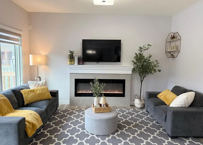 Family Friendly Garagefireplace Sleeps 8 villa features an access to a fully furnished kitchen with an oven and a dishwasher. Guests can easily reach Edmonton International airport, located 20 minutes' drive away from the holiday home.